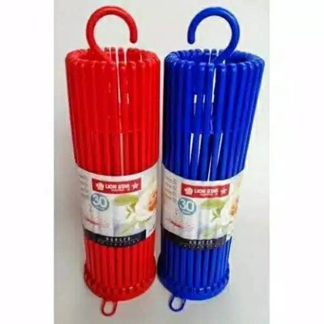 Folding Hanger 30 Stick Lion StarPilihan warna :- biru- merahsangat cocok untuk menjemur pakaian bayi atau pakaian dalamMerupakan merk yang menjaga kualitas produk sehingga bahannya tebal berkualitas, tidak mudah