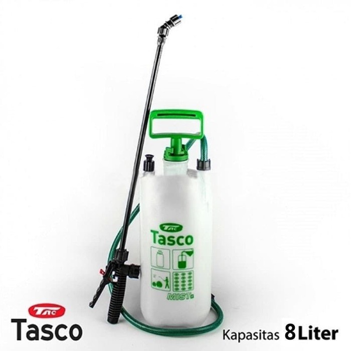 TASCO Alat Semprot Hama 8 Liter adalah alat semprot untuk membasmi hama yang dapat Anda sandangkan pada punggung.Prinsip kerjanya adalah:Ketika Anda memompa penyemprot menggunakan tangan Anda, larutan akan dikeluarkan dari tangki karena adanya tekanan udara. Keadaan ini membuat larutan pestisida dalam tangki dipaksa keluar melalui klep dan akan keluar melalui nozzle/mulut semprotan. Selanjutnya Anda dapat mengarahkan semprotan ke area pertanian yang terkena hama.Tasco sprayer mist ukuran 8 liter ini cocok digunakan untuk berbagai keperluan semprotan seperti penyemprotan cairan di dalam rumah walet.Deskripsi :Kapasitas Tangki : 8 literTekanan Max : 3 kg/cm2Tekanan Operasi : 2 kg/cm2Diameter Tangki : 190 mmTinggi : 585 mmBerat : 4 kgUkuran (L x W x H cm): 20 x 20 x 60 cmNB:Pengiriman dikenakan volume dengan ukuran dus adalah 20 x 20 x 60 cm.NOTE:1.Sebelum dikirim mesin dicoba terlebih dahulu, dan dipastikan tidak bermasalah.2. Maksimal order jam 2 siang, lebih dari jam 2 dikirim hari berikutnya.3.Pengiriman senin - sabtu max jam 4 sore hari minggu libur.4.Seller tidak bertanggung jawab kalau didalam pengiriman terjadi retak,pecah,rusak dsb.karena sebelum kirim barang sudah dicek terlebih dahulu.5.Terlambatnya barang sampai, bukan tanggung jawab seller, karena barang yang sudah dipesan, langsung diproses.Pembeli bisa menghubungi ekspedisi terd