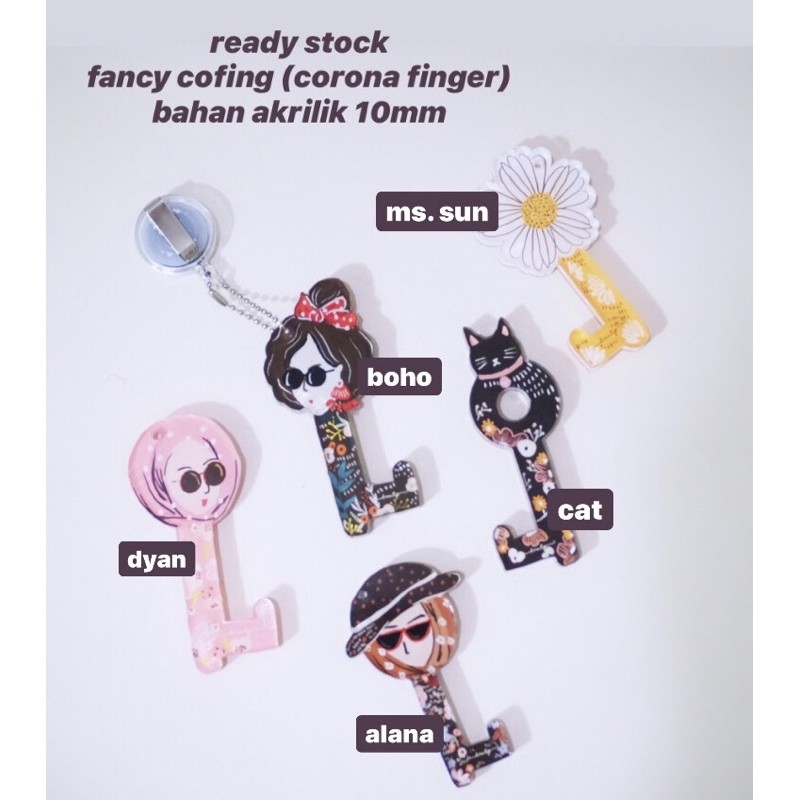 cofing (corona finger) bahan akrilik dengan ketebalan 10mmtebal dan kokohharga untuk 1pc cofing yah. apa sih cofing itu? cofing / corona finger adalah alat bantu untuk melindungi jari kita saat menyentuh perabotan di tempat umum. produk ini ready stock. dan bisa pilih motif. jangan lupa untuk tulis code motif di note saat cekout ya ka