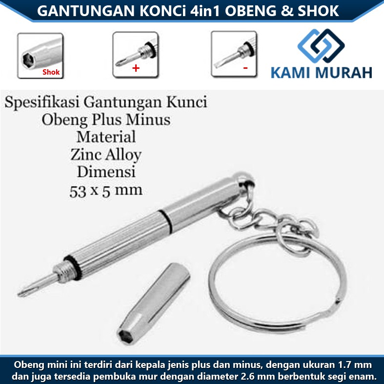 Pernahkah Anda membutuhkan obeng disaat mendesak untuk membongkar peralatan yang sedang Anda gunakan saat beraktifitas? Peralatan seperti mouse, jam tangan, mp3 player cenderung menggunakan sekrup ukuran kecil dan membutuhkan obeng untuk membukanya. Kini Anda dapat membawa obeng kecil kemana saja dengan bentuk gantungan kunci yang mini, dan menggunakannya saat diperlukan.FEATURESMini ScrewdriverBentuknya sangat kecil dan ringkas, memudahkan Anda untuk membawanya kemana saja, namun dibalik itu tersimpan fungsi yang besar terutama ketika Anda ingin membongkar peralatan sehari-hari Anda. Bentuk obeng yang kecil dapat Anda manfaatkan untuk membuka baut-baut yang mengencangkan peralatan Anda seperti mouse, mp3 player, jam tangan, dan lain sebagainya.3 Kinds of PinObeng mini ini terdiri dari kepala jenis plus dan minus, dengan ukuran 1.7 mm dan juga tersedia pembuka mur dengan diameter 2.6 mm berbentuk segi enam.KeychainObeng kecil ini didesain dengan gantungan kunci sehingga memudahkan Anda untuk dapat membawanya kemana saja. Panjang obeng pun hanya 53 mm saja sehingga tidak mengganggu ketika dimasukan kedalam saku.PACKAGE CONTENTS1 x Gantungan Kunci Obeng Plus MinusMaterialZinc AlloyDimension53 x