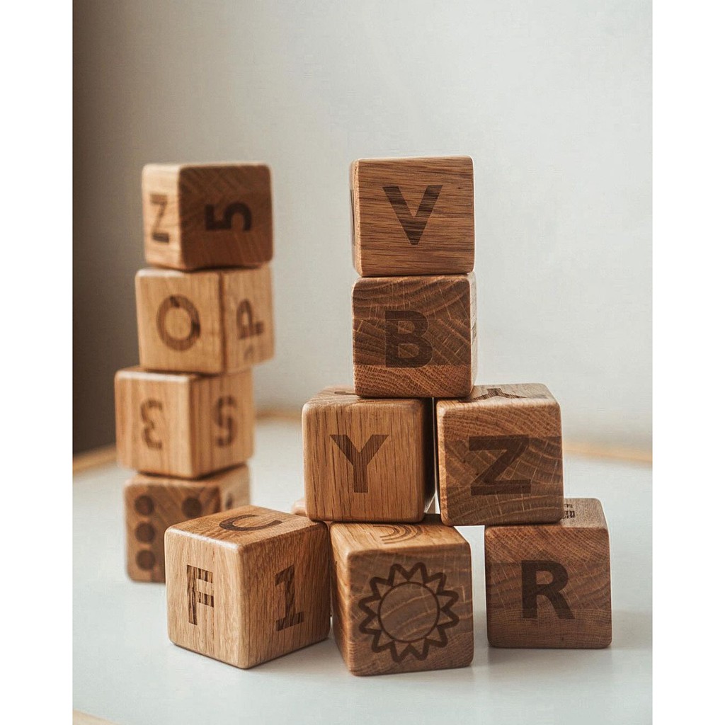 Alphabet Blocks terdiri dari 12 kubus dengan ukuran 5x5x5 cm tiap kubusnya. Setiap sisi Alphabet Blocks digrafir laser. Terdapat alfabet A-Z, angka 0-9, dan simbol-simbol.Alphabet blocks ini merupakan open-ended toys yg bisa dimanipulasi untuk kegiatan close-ended juga. Selain dapat dijadikan building blocks, anak pun bisa belajar alfabet & angka lewat Alphabet Blocks. Anak bisa diajak untuk menyusun nama menggunakan Alphabet Blocks, alphabet matching, numbers matching, counting, dll. Salah satu blok juga ada pola dadu, jadi bisa dibuat sebagai dadu raksasa di permainan board game seperti ular tangga, monopoli, dll.Alphabet blocks terdiri dari 12 kubus berukuran 5x5x5cm, dengan isi:10 kubus (60 sisi) diukir huruf & angka: terdapat 50 kombinasi huruf A-Z, dan 10 angka (0-9)1 kubus (6 sisi) diukir simbol2 (6 simbol unik)1 kubus (6 sisi) diukir simbol dadu (6 simbol dadu)1. Bahan : Terbuat dari kayu White Oak, & ukuran kubus: 5 x 5 x 5 cm2. Mainan ini dicat dengan waterbased stains non-toxic yang bersertifikat aman untuk anak & lingkungan3. Mainan ini handmade sehingga kemungkinan akan terjadi perbedaan warna dan gurat kayu dari mainan yang ada di foto.4. Jangan rendam mainan ini di air. Untuk membersihkan mainan, cukup usap dengan lap.5. Usia rekomendasi: 1+, tetap awasi anak Anda bermain.Handcrafted with love.DISCLAIMER:1. Kami hanya melayani komplain & retur yg disampaikan maksimal:- karena sebab patah atau rusak ketika diterima: 1 hari setelah diterima- karena sebab lainnya: 7 hari setelah barang diterima.Kirim barang kembali ke kami maksimal 14 hari setelah barang diterima.2. Barang dalam kondisi seperti di bawah ini tidak dapat diretur/ditukar (kecuali patah/rusak ketika diterima):- Barang custom atau personalized order- Barang diskon3. Pembeli bertanggung jawab terhadap biaya pengiriman barang retur. Barang harus sampai di penjual seperti kondisi barang saat diterima pem