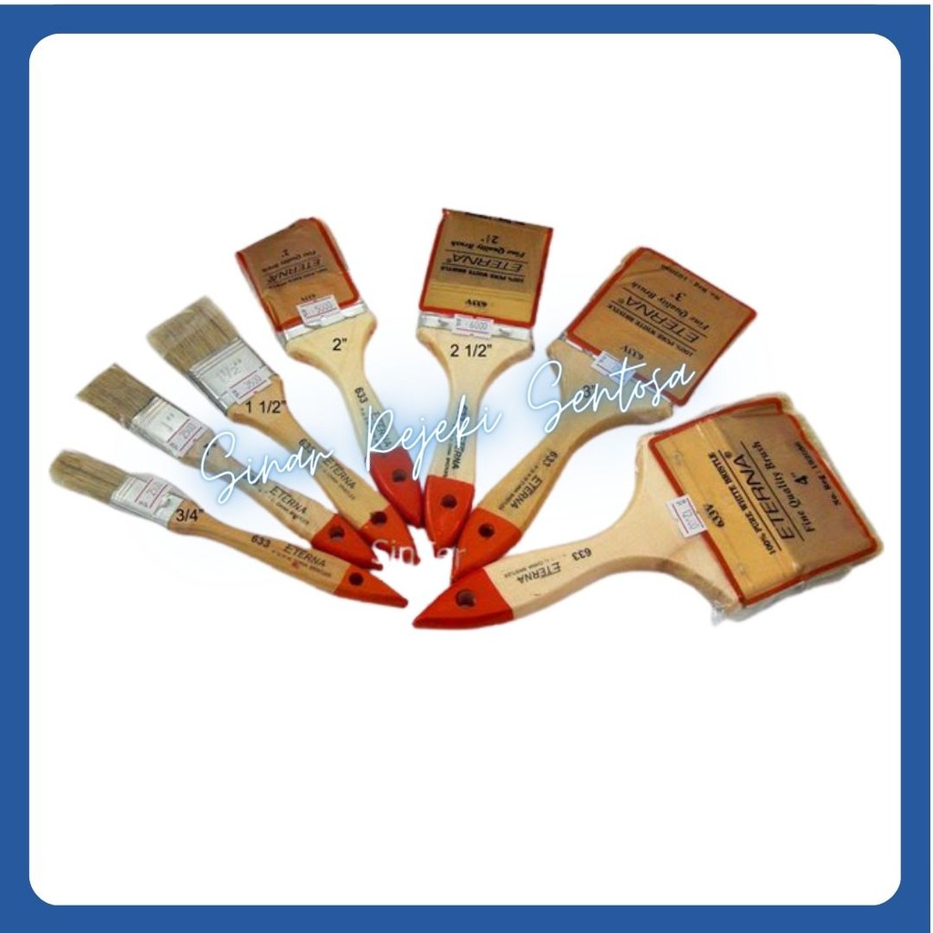 Jenis : Kuas CatMerek : EternaUkuran :1 inch1 1/2 inch2 inch2 1/2 inch3 inch4 inch5 inchBarang sudah di cek sebelum dikirim, kami tidak menerima retur atau komplainTerima kasih telah berbelanja di Toko Sinar Rejeki Se