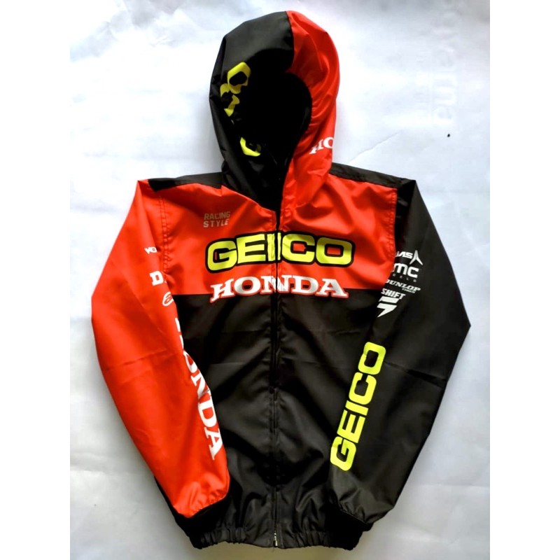 jaket parasit waterproof GEICO HONDA kidsbahan micro NS waterproof tidak mudah basah anti air dan cepat keringdi dalam jaket di lengkapi furing jala nyaman digukan ketika musim panas atau dinginpengerjaan cetak dengan sistem sublimasi digital printingsebelum membeli harap tanyakan size terlebih dahulu biar tidak terjadi kesalahanHappy shoppi