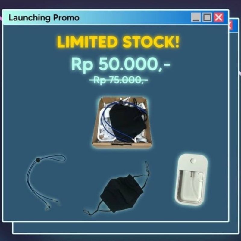 Isinya ada apa aja sih? COVID-19 Kit:- Masker kain 3D - Strap mask- Hand sanitizer DISCOUNT PRICE: IDR 50.000 (harga normal 75.000) Covid-19 Kit ini cocok banget loh buat kalian jadiin gift untuk temen/pacar/keluarga kalian. Limited stock! buy now or regret l