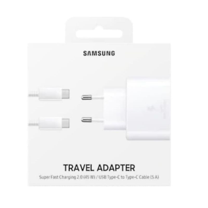 Charger Samsung Travel Adapter 25W Fast Cable Type C to Type-C 5AORIGINAL SAMSUNG 100%READY WHITE & BLACK !!Fast Charging 3.025W Travel Adapter also support charges 15WUSB Type-C InterfaceGets your phone back to 100% in record timePlug your Galaxy Note10+ into the 25W Travel Adapter to fully charge with incredible speed. More powerful than previous travel adapters, it harnesses the power of Super Fast Charging 2.0 makes sure you're not down for long.Works with your friends' phones tooThe 25W Travel Adapter also charges at 15W. So it safely charges your other devices and your friends' Galaxy devices too, even if their Galaxy device doesn't support Super Fast Charging 2.0.Spesifikasi- Brand : Samsung- Super Fast Charging 2.0- Model : EP-TA845- PD 3.0 PPS 25W- USB type-C to Type-C Cable Include- Package : Retail Box